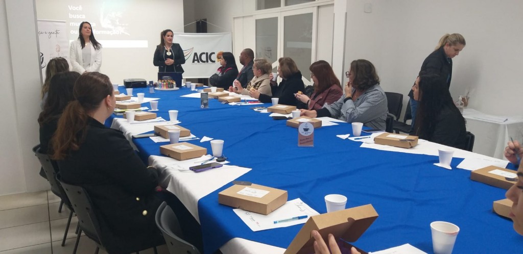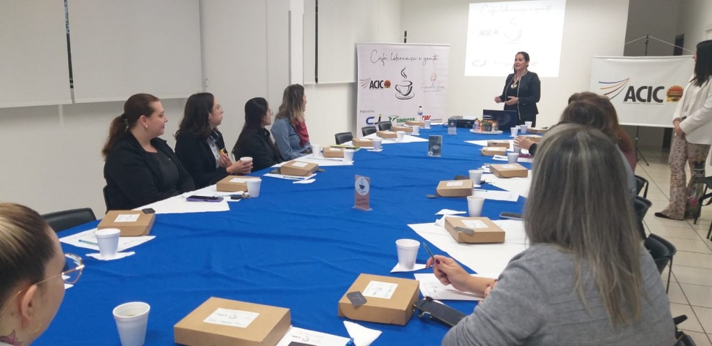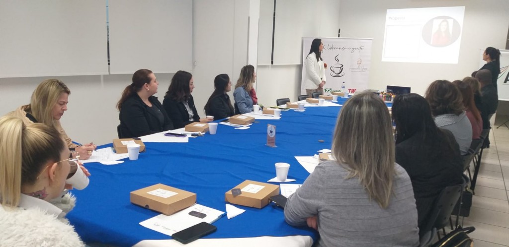 Na manhã desta terça-feira (13) aconteceu mais uma edição do Café, Liderança e Gente em parceria com a associada Franciélli Gross da Engenharia de Líderes Academy. Na ocasião a palestrante Linara Silva, falou sobre Constelação Organizacional e Mediação de Conflitos na Gestão, com uma dinâmica entre os participantes a explanação da palestrante direcionou para as áreas de gestão das empresas.